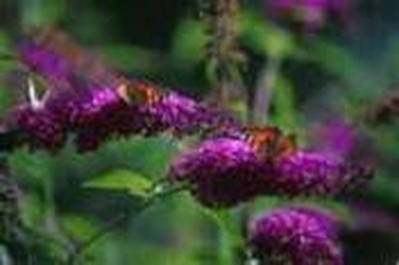 Prune back hardy shrubs, such as butterfly bushes, to the first pair of buds. Cut the branch at its point of origin from the main part of the stem. This will create a more open plant without promoting excessive new growth, which can cause the plant to be top heavy.