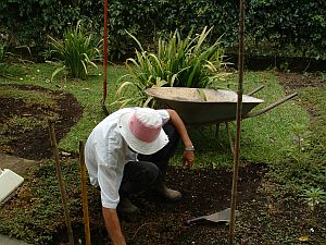 Create the planting space. If there is presently grass growing in the garden, remove it with the spade. Dig the tines of the spade under the grass and loosen the grass roots. Separate the grass in small pieces and toss it into the garbage can. Remove all of the grass in this fashion from the flower bed.