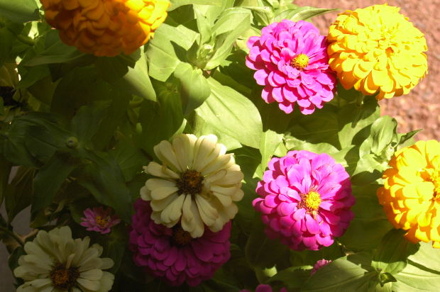 Harvest zinnias on a cool, dry day. Pick with a 6 to 8 inch stem. Strip leaves from the stem and form small bundles of six to eight stems. If you grow more than one color, it is wise to dry bundles of the same color zinnias for easy storage of separate colors. If you prefer mixed colors, you can dry them together to produce mixed seed. Secure with twine or bind with elastics.