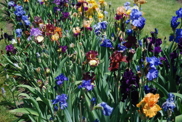 Select a location for iris that receives six to eight hours of direct sunlight a day. Although they will grow in partial shade, size and bloom color may suffer.