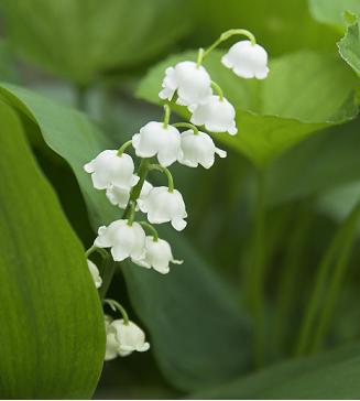 Lily of the valley, Convallaria majalis, is a lovely spring flower that grows wild in moist, shady woodlands. It is native to Europe, but can be found throughout North America and northern Asia. A favorite in shady gardens, lily of the valley spreads easily, filling spring garden beds with flowers and the air with a lovely fragrance.