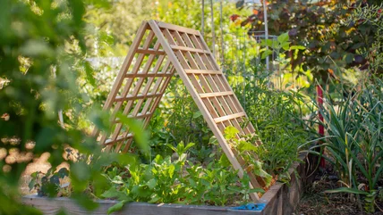 There are a few different ways to construct a trellis, and what option will work best for your garden depends not only on your personal preference but also on the materials you have available and the types of crops you're growing. While it likely isn't realistic to create an arched trellis using only old tools, a simple teepee or a basic V-shaped trellis can both make good options.